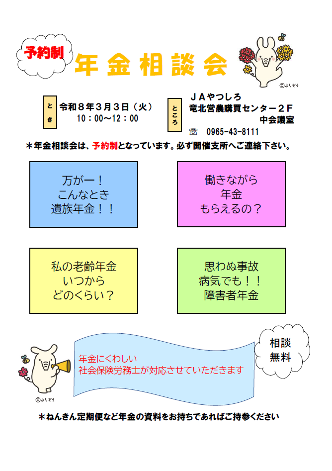 令和8年3月3日(火)10:00~12:00 竜北営農購買センター2階 中会議室